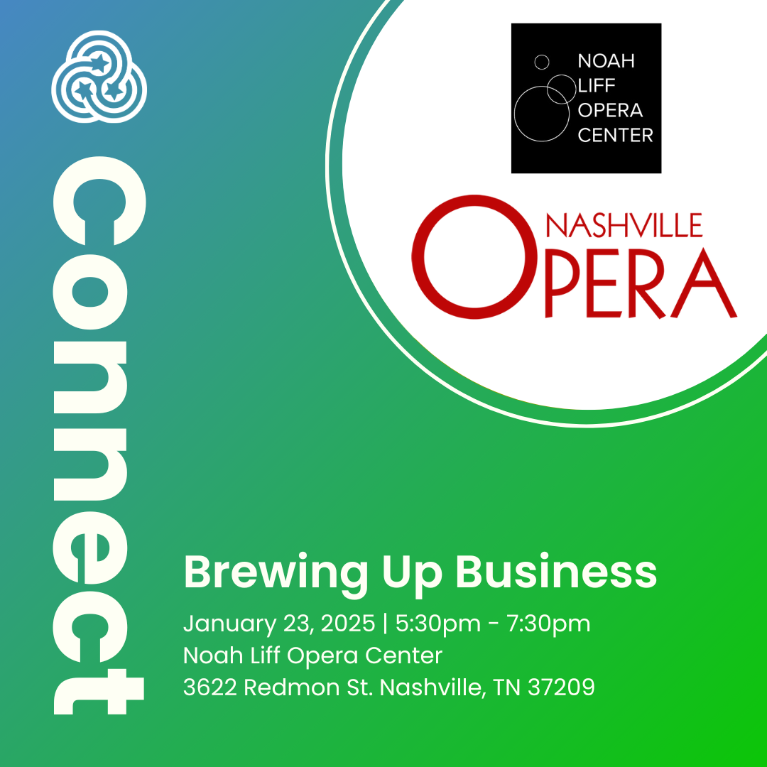 Start the New Year on a high note! Join us for the first Brewing Up Business event of 2025, hosted at the stunning Noah Liff Opera Center in partnership with the Nashville Opera. Experience a behind-the-scenes look at the world of opera in one of Nashville's most captivating cultural spaces, the Noah Liff Opera Center. Beyond its role as home to the Nashville Opera, this stunning venue is fully customizable and available to host any event, from weddings to corporate gatherings.